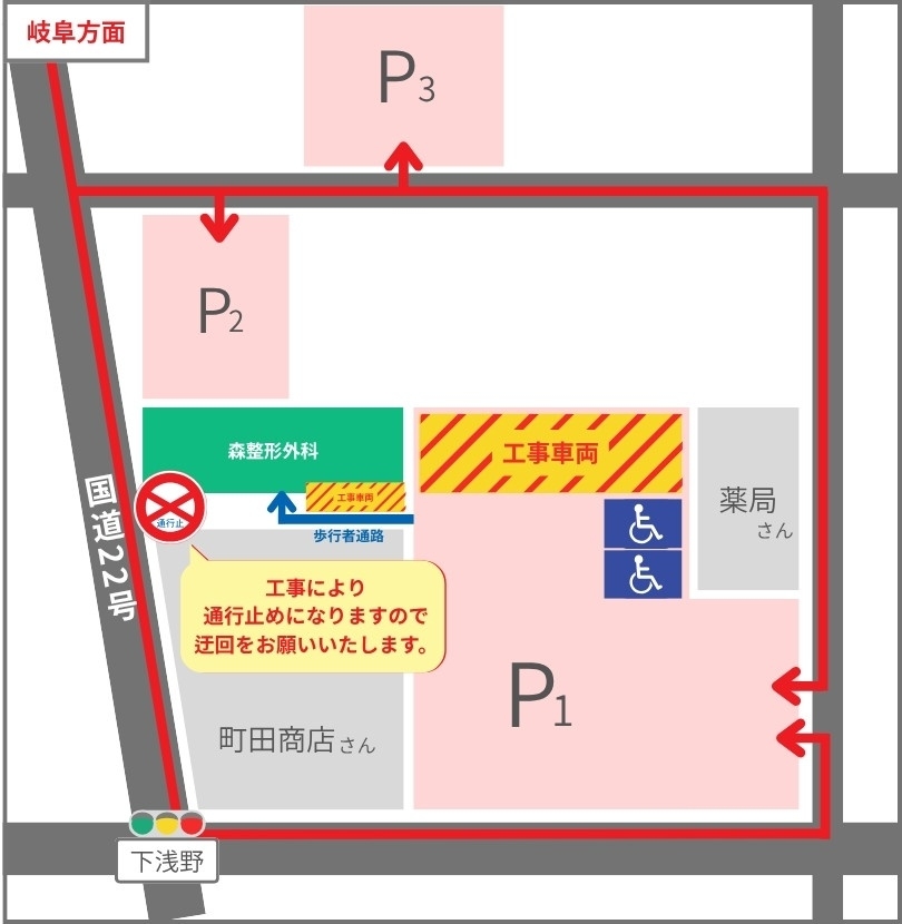 岐阜方面から国道22号をご利用の方は、恐れ入りますが迂回のご協力をお願いいたします。